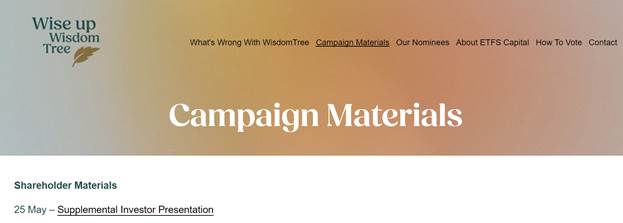 ETFS Capital Limited, together with the other participants named herein (collectively, “ETFS Capital”), has filed a definitive proxy statement and accompanying GOLD proxy card with the Securities and Exchange Commission (the “SEC”) to be used to solicit votes for the election of its slate of highly-qualified director nominees at the 2023 annual meeting of stockholders (the “Annual Meeting”) of WisdomTree, Inc., a Delaware corporation (the “Company”).